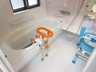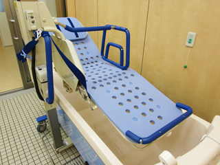 一般浴とストレッチャー浴があります。 お風呂はお一人ずつの入浴でプライバシーに配慮しており、お湯は毎回入れ替えるので清潔です。 ご利用者様の体調や状態に合わせて、スタッフが見守り、介助をさせていただいております。安全に入浴していただけます。
